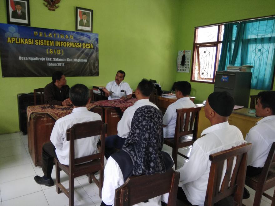 Dilakasanakan pelatihan SID oleh Pemerintah Desa Ngadirejo Kecamatan Salaman pada hari rabu tanggal 05 Mei 2018 yang merupakan sesi pertama dari 2 sesi yang direncanakan dan diikuti oleh semua perangkat Desa Ngadirejo.